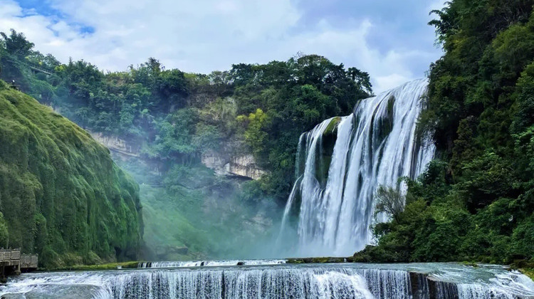 68级跌水瀑布位于荔波县小七孔景区内,毗邻小七孔桥,源头就在拉雅瀑布前。