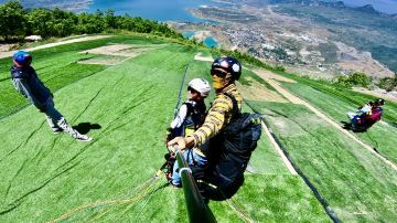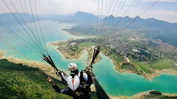 牂牁江国际滑翔伞基地位于六盘水市牂牁江风景名胜区内,距离六枝特区市中心60公里,起飞场建立在海拔1600米的九层山巅,站在起飞场放眼望去,目光所及皆是青山绿水,整个牂牁江美景尽收眼底,待到夕阳西下时,还可欣赏一番别致的晚霞美,从起飞场乘坐滑翔伞起飞后,像鸟儿一样自由飞翔在美丽的牂牁江上,迎面吹拂着江风,俯瞰山水美景,如此美妙的感受,令人终身难忘!
