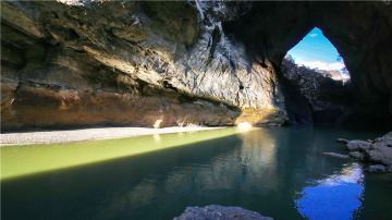 “八洞天”洞口宽仅二三米,而高达数十米,好似高楼窄巷,阳光折射进去,水面光色变幻无穷;