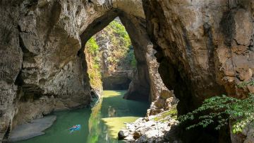 九洞天位于大方、纳雍两县交界的六仲河上,是国家重点风景名胜区,总长约6公里,分为两段。洞内暗河扩展形成多处洞内湖,水流平稳。