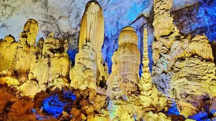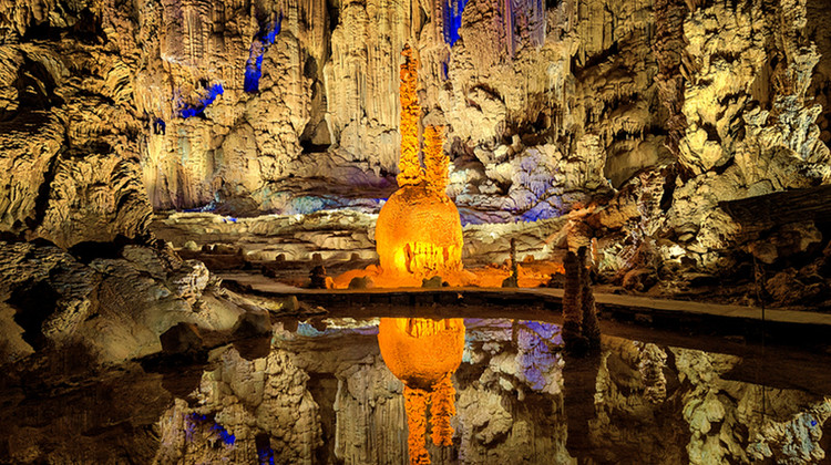 在洞穴里可以欣赏到遍布的石笋、石柱、石芽、钟旗等各种堆积岩石,形成千姿百态的岩溶景观。洞道纵横曲折,石峰星罗四布。万千景象,美不胜收,令人不经感慨大自然的鬼斧神工。买票进入景区后,一般20-30人为一批,有导游跟随讲解。在淡季,必须凑够10人才能进洞,因为洞大路多,为防止游客迷路走丢,必须紧跟导游游览。