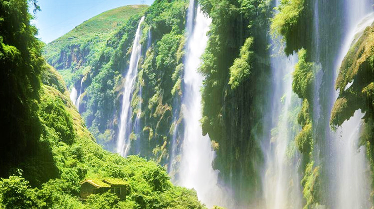 河谷幽深,瀑布百余条