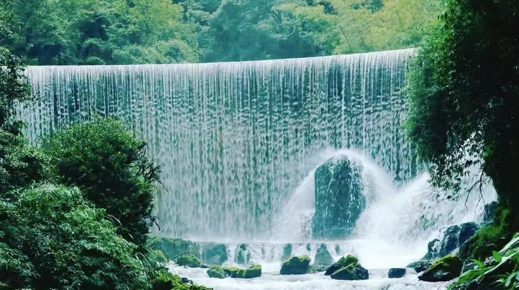 2:陡坡塘景区:《西游记》片尾取景地——【陡坡塘瀑布】,主题曲唐僧师徒四人牵马过河的场景就在此取景。