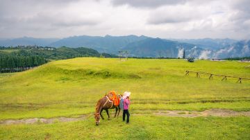 乌蒙大草原当地人也称为坡上草原,位于盘县北部。草原平均气温11.1℃,气候凉爽,是一个避暑胜地。在草原上可以进行各种户外活动,如骑马、射箭、露营、烧烤等,是一个自驾游的理想选择。